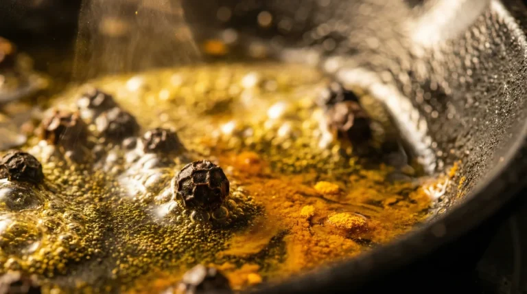 Discover why sprinkling raw black pepper on your turmeric latte isn't enough. Learn the culinary chemistry of blooming whole peppercorns in hot fat to fully…